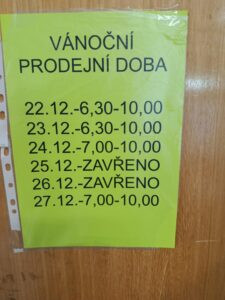 Vánoční prodejní doba místního obchodu