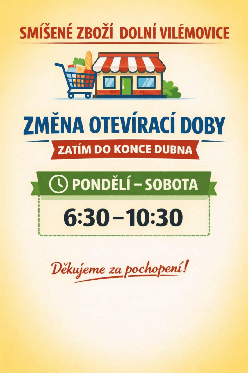 Změna otevírací doba místní prodejny